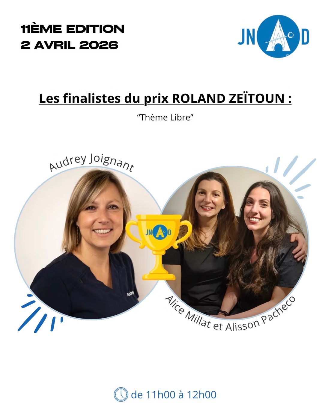 Dans le cadre des JNAD 2026, le Prix Roland Zeïtoun récompense des assistants dentaires pour la richesse de leur réflexion, leur engagement professionnel et la pertinence de leurs interventions 🏆